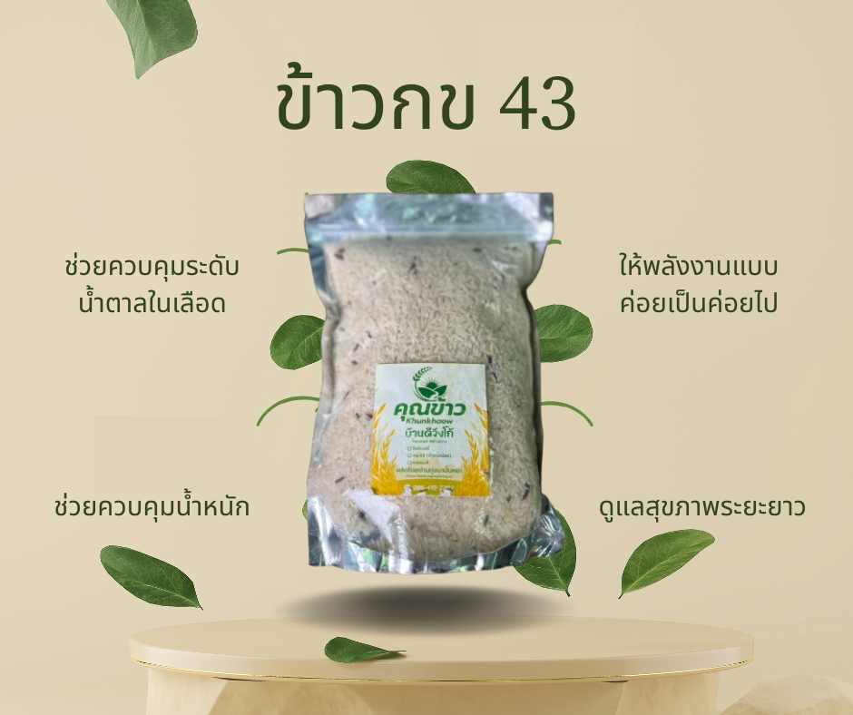ข้าว กข 43 เป็นข้าวสายพันธุ์ไทยที่ได้รับการพัฒนาให้มี ค่าดัชนีน้ำตาลต่ำ (Low GI)