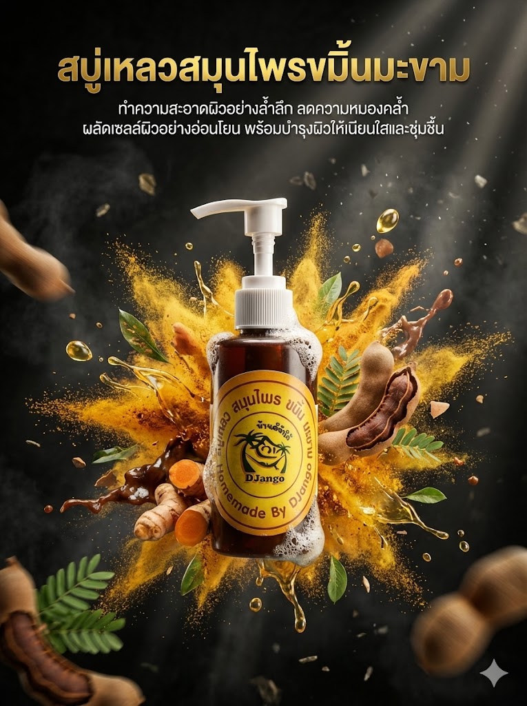 🌟 จุดเด่นของสบู่เหลวสมุนไพรขมิ้น มะขาม